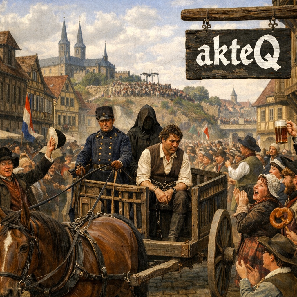 Wie Rom wurde die fränkische Stadt Bamberg auf 7 Hügeln erbaut, weshalb sie den Beinamen Fränkisches Rom erhielt. In Bambergs malerischer Altstadt fand im Jahr 1832 auf dem Rabenstein, die letzte öffentliche Hinrichtung statt. Hingerichtet wurde der Raubmörder Johann Georg Pröschel und das unter den Augen von unzähligen Schaulustigen. Die Stimmung glich einem Volksfest als Georg Pröschel vom Gefängnis in der Sandstraße zur Hinrichtungsstätte Rabenstein mit dem Wagen gefahren wurde. Doch warum wurde Georg Pröschel hingerichtet? Johann Georg Pröschel war ein Bäckergeselle aus Beerbach, der Sohn eines mehrfach vorbestraften Tagelöhners. Er stammte aus einfachen Verhältnissen und war gut mit dem Schneidergesellen Klemens Maierholzer befreundet. Beide lernten auf ihren Wandertouren, die sie unternahmen, um ihr Handwerk in anderen Orten auszuüben, am 13. September 1829 den 18 Jahre alten Buchbindergesellen Georg Gottlieb Klein in Erlangen kennen. Dieser junge Bursche besaß nicht nur eine wertvolle Silberuhr, sondern auch einen voll bepackten Lederrucksack mit allerlei Habseligkeiten und Geld. Schnell fasste Pröschel den Entschluss die Wertgegenstände an sich zu bringen. Er weihte seinen Freund Maierholzer in den Plan ein, gemeinsam den Klein auszurauben und wenn nicht anders möglich, ihn gar umzubringen. Am nächsten Tag wollten alle drei nach Bamberg marschieren, von dort wollten sie einen Tag später nach Würzburg aufbrechen. Auf ihrer Wanderroute machten sie unter einem Vorwand eine Rast nahe der Gemeinde Gaustadt. Dort gab es einen schönen Rastplatz schattig im Wald gelegen, der ideale Ort, um den Plan Klein auszurauben, in die Tat umzusetzen. Kaum waren sie auf dem Platz angekommen, überwältigte Pröschel den völlig verdutzten Klein, den er mit seinem Halstuch erdrosselte. Danach nahm er alle Wertgegenstände an sich und rannte seinem Kumpel Maierholzer nach, der beim Angriff auf Klein die Flucht ergriffen hatte. Doch diesen traf er erst wieder am 17. September in Schweinfurt, wo er mit ihm seine Beute teilte. In der Zwischenzeit wurde am 15. September 1829 im Gebüsch die Leiche von Georg Gottlieb Klein gefunden. Die gerichtsmedizinische Untersuchung ergab, dass dieser ermordet worden war. Aufgrund der Tatsache, dass alle drei Wanderburschen ihre Wanderbücher zur weiteren Reise von Würzburg nach Bamberg dokumentieren ließen, konnten Pröschel und Maierholzer ausfindig gemacht. Bei diesen wurden Wertgegenstände von Klein gefunden. Doch Pröschel stritt die Tat ab und wurde aus Mangel an Beweisen nur zur Zwangsarbeit nach Plassenburg gebracht. Dort gestand er schließlich den Raubmord an Klein. Am 14. Dezember 1831 wurde er zum Tode verurteilt. Dieses Urteil wurde am 9. April 1832 auf der Hinrichtungsstätte am Rabenstein unter 18.000 bis 20.000 Menschen durch den Scharfrichter vollstreckt. Damit starb zum letzten Mal öffentlich am Rabenstein ein Mensch. Der Rabenstein wurde 1860 abgerissen, da in Bayern Hinrichtungen nur noch in geschlossenen Gefängnisräumen vor ausgewählten Zeugen vollzogen wurden.